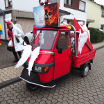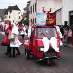 Obwohl die Temperaturen an Karnevalsamstag alles andere als „Engelhaft“ waren, hatten wir beim Karnevalsumzug durch Rübenach wieder einen Heidenspaß daran. Eingekleidet in rotweißen Kostümen waren wir optisch auch ohne Frage als Quodlibet Engelchen ein auffallender Hingugger. Chorleiter „Wolli“ als Teufelsfahrer saß am Steuer unseres mit Wurfmaterial vollgeladenen Teufelsgefährt, worüber in erster Linie die Kids am Straßenrand sich freuten. Der Zug war insgesamt zwar etwas kleiner, der guten Stimmung tat dies aber keinen Abbruch.